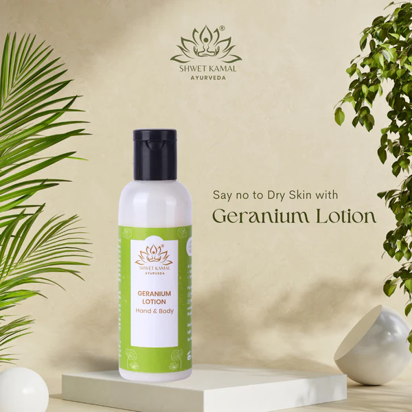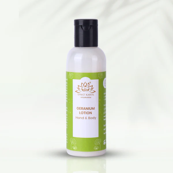 • Daily exposure to pollution, sun, and stress can make your skin dull, rough, and dehydrated. The Shwet Kamal Ayurveda Geranium Body Lotion is carefully crafted with geranium essential oil, shea butter, almond oil, and olive oil, designed to restore softness, radiance, and long-lasting hydration.