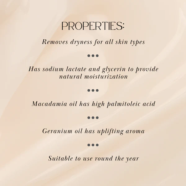 • Ayurvedic Hydration – Geranium oil and shea butter deliver deep moisturization, leaving skin silky smooth and hydrated.