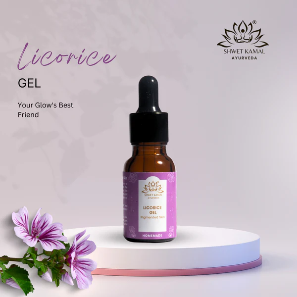 Shwet Kamal Ayurveda Licorice Gel reduces pigmentation, fades dark spots, and restores skin brightness with natural Ayurvedic licorice root extract.